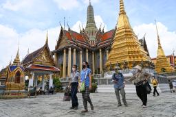 1日、観光客受け入れが再開された首都バンコクの王宮周辺(共同)