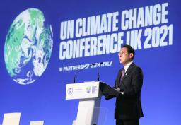 【グラスゴー共同】岸田文雄首相は2日、英北部グラスゴーで開催中の国連気候変動枠組み条約第26回締約国会議(COP26)の首脳級会合に出席し、発展途上国の温暖化対策を支援する資金に関して、これまで表明した600億ドルに加え「新たに5年間で、最大100億ドル(約1兆1350億円)の追加支援を行う用意がある」と述べた。アジアなどの脱炭素化支援に貢献する姿勢をアピールする狙いがある。