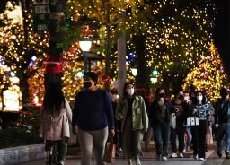 イルミネーションで飾られた大阪市のメインストリート・御堂筋=3日夜