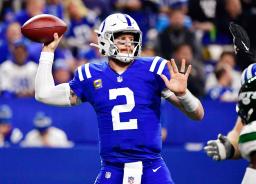 ジェッツ戦でパスを投げるコルツのQBウェンツ=インディアナポリス(USAトゥデー・ロイター=共同)