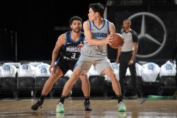 マジック戦でプレーするレジェンズの馬場雄大(手前)=5日、米フロリダ州レークランド(NBAE提供・ゲッティ=共同)
