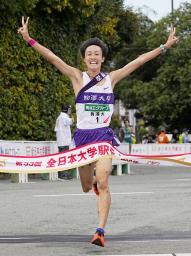 全日本大学駅伝は7日、名古屋市の熱田神宮から三重県伊勢市の伊勢神宮まで8区間106・8キロで争われ、駒大が2連覇を達成し、歴代最多を更新する14度目の優勝を決めた。2位は青学大。