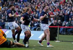 ラグビーのテストマッチは7日、英国のエディンバラで行われ、スコットランドがオーストラリアに15―13で競り勝った。(共同)