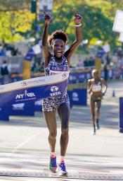 ニューヨークシティー・マラソンの女子で優勝したペレス・ジェプチルチル=ニューヨーク(AP=共同)